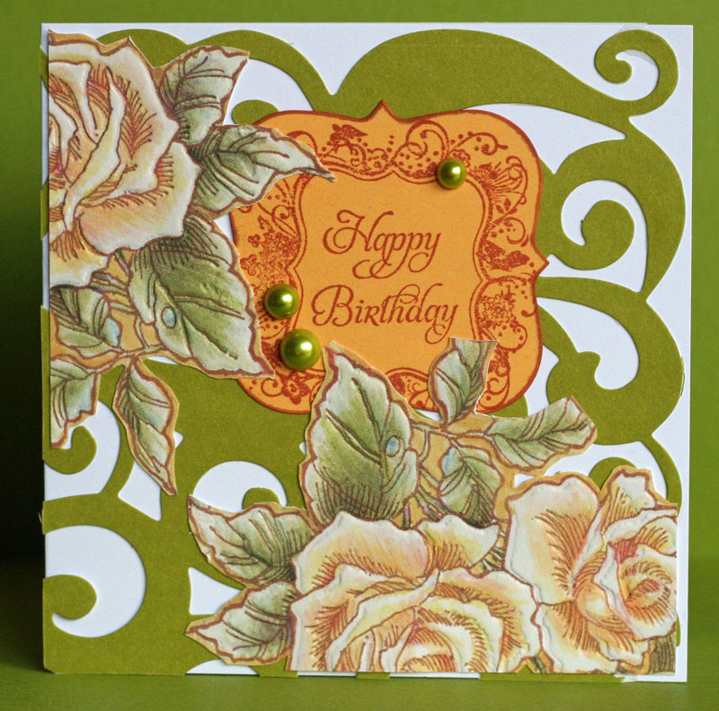 A masculine card - so minus the roses, but plus a bit of ribbon and using more sombre colours.